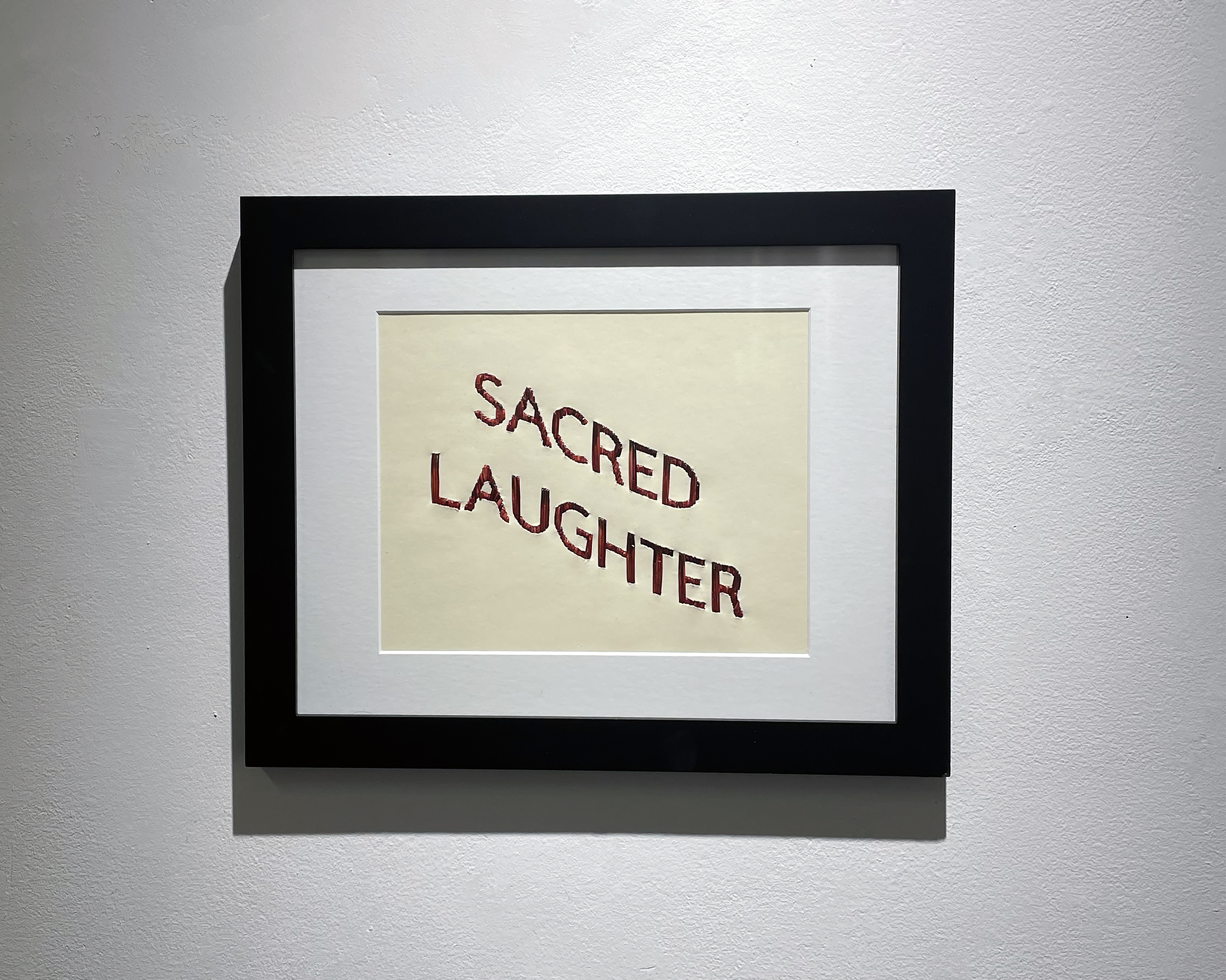 The work is made with hand-dyed porcupine quills using cochineal and lac. The quills were carefully embedded into paper from an earlier project (Gepmite'tg “Paying homage” 2019) that honours Missing and Murdered Indigenous Women, Girls, and Two-Spirit people.
